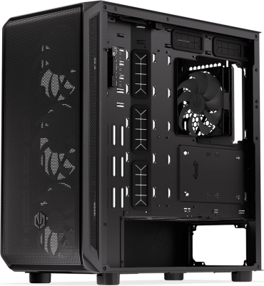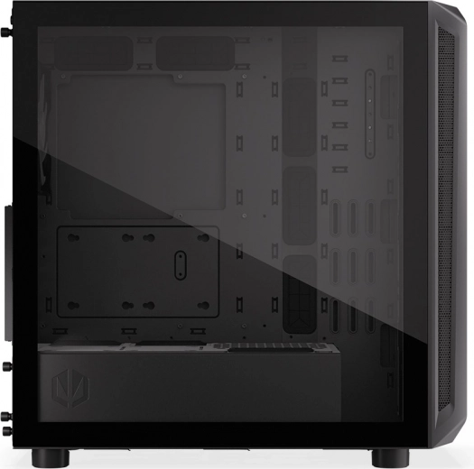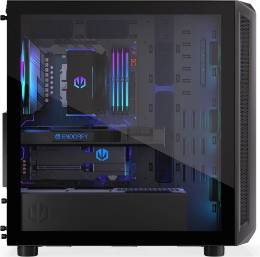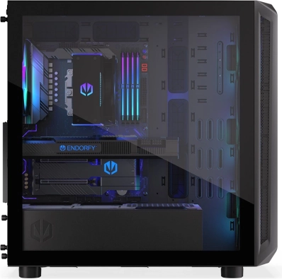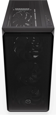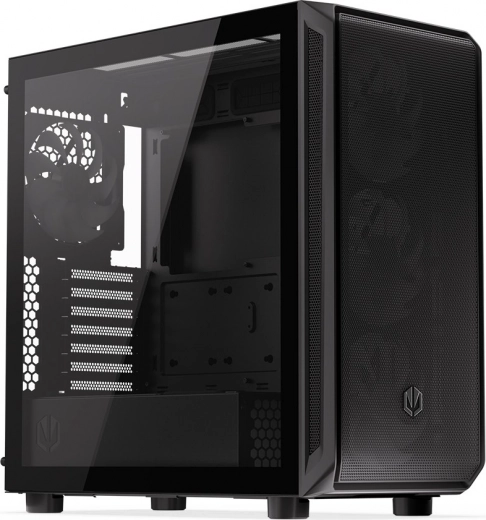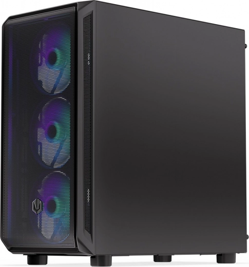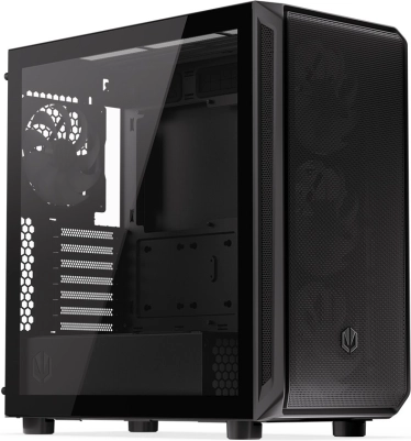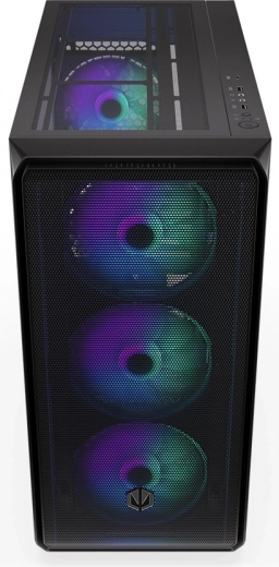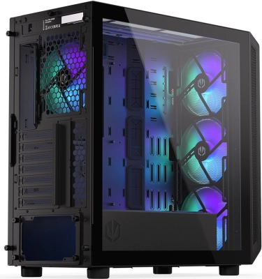 De behuizing heeft een modern design met een transparant zijpaneel van glas en ARGB-verlichting die extra esthetische waarde toevoegt.