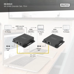 Maakt het mogelijk HDMI-signalen te verlengen tot een afstand van 70 m met ondersteuning voor resoluties tot 4K.