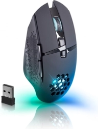 Geniet van de vrijheid zonder kabels met 2,4 GHz RF-technologie, die zorgt voor een stabiele en snelle respons. De optische sensor met tot 3200 DPI schakel je eenvoudig afhankelijk van de situatie – van nauwkeurig mikken tot snelle bewegingen. RGB-verlichting geeft je gaming-setup extra stijl.