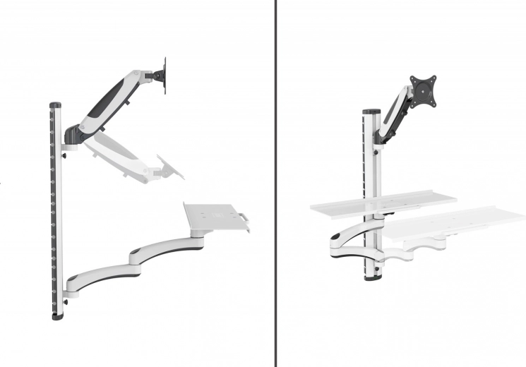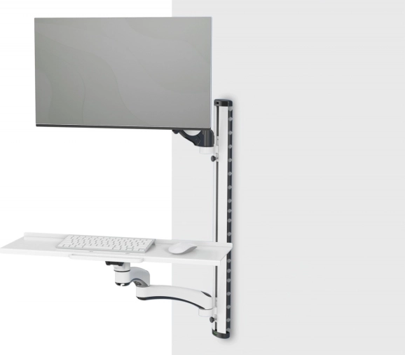 De DIGITUS wandarm combineert een monitorhouder met een apart plateau voor toetsenbord en muis, zodat u van één muur een volwaardige, ruimtebesparende werkplek maakt. De arm met kabelbeheer zorgt voor orde en dankzij de traploos verstelbare hoogte van beide armen stelt u gemakkelijk de ideale ergonomie in.