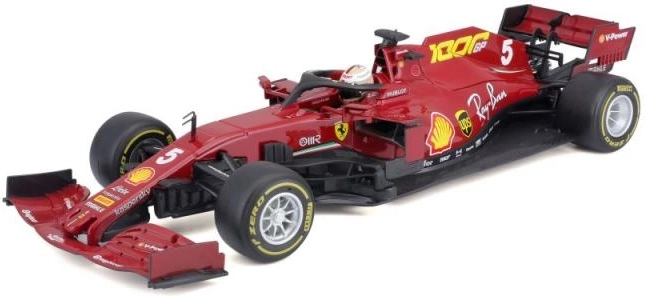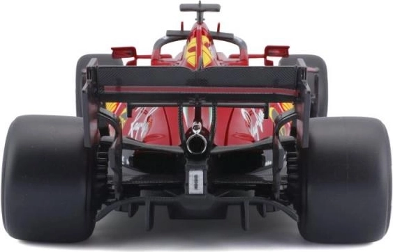 Het model vangt realistische designelementen, inclusief sponsorlogo’s en aerodynamische vormen die kenmerkend zijn voor Ferrari-racewagens.
