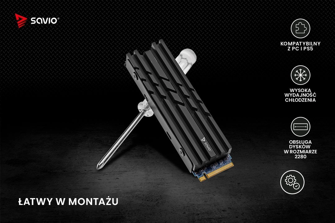 De Savio AK-60-koeler is ontworpen voor standaard SSD’s in M.2-formaat 2280 en voert warmte efficiënt af dankzij de massieve metalen constructie met ribben. Zorgt voor stabiele werking van je NVMe-schijf, zelfs bij veeleisende taken zoals gamen, werken met grote bestanden of videobewerking.