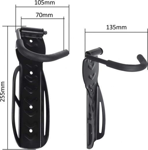 - Lengte houder ca. 255 mm, uitslag haak ca. 135 mm