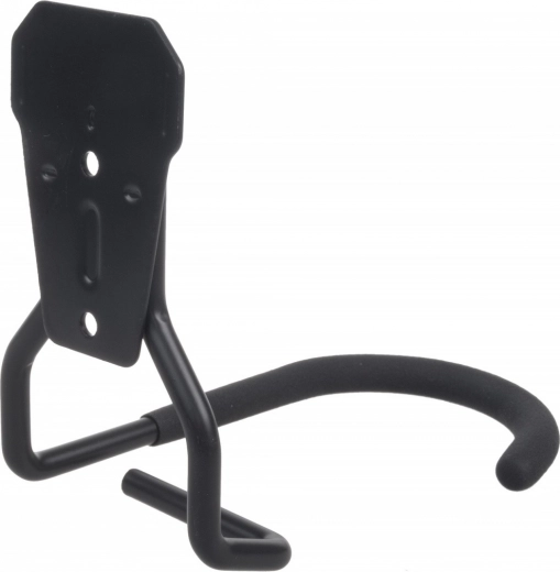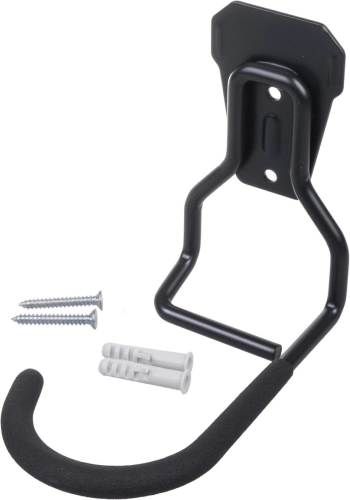 Praktische wandhouder waarmee je je fiets verticaal kunt opbergen en zo ruimte bespaart in garage, kelder en appartement. Robuuste stalen constructie met een draagvermogen tot 20 kg, haak met rubberen coating ter bescherming tegen krassen op de velg en eenvoudige montage dankzij de meegeleverde pluggen en schroeven voor een veilige en stabiele opslag van de fiets.