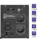 De AVR‑technologie (Automatic Voltage Regulation) vlakt spanningsschommelingen af en spaart de accu, terwijl de Cold Start-functie het mogelijk maakt aangesloten apparaten in te schakelen zonder netspanning. Verder is er beveiliging tegen overbelasting en kortsluiting en een USB‑poort voor verbinding met pc‑software voor monitoring en beheer van de UPS.