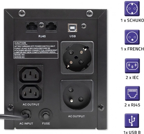 - USB-poort: maakt beheer en monitoring van de UPS mogelijk.