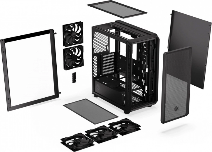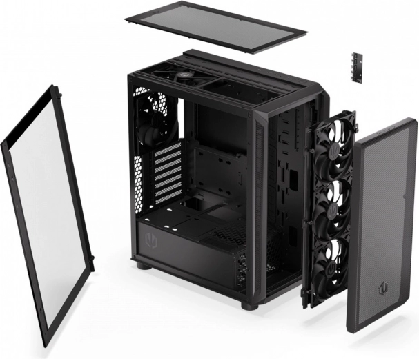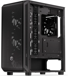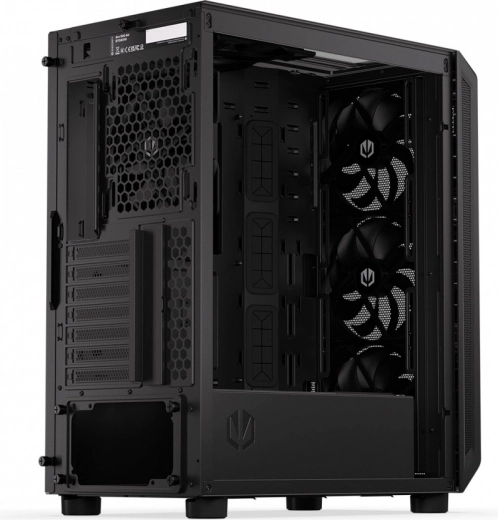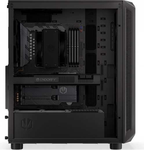 De computerbehuizing Endorfy Arx 500 Air is een van de grootste behuizingen die we hebben gecreëerd, met afmetingen van 486×228×429 mm. Deze behuizing biedt comfortabel plaats aan een hoog koelsysteem van maximaal 179 mm, 7 ventilatoren (5 Stratus 140 PWM zijn inbegrepen in het pakket) en de meeste grafische kaarten op de markt met een lengte tot 350 mm. Het doorzichtige zijpaneel van gehard glas maakt het eenvoudig om de interne ruimte te controleren.