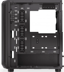 De Arx 500 ARGB-behuizing ondersteunt tot zeven ventilatoren voor maximale koeling, inclusief vier vooraf geïnstalleerde Stratus 140 PWM ARGB-ventilatoren.