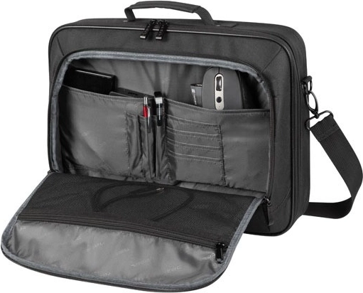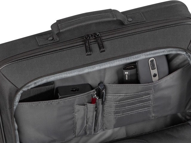 De voorzak biedt ruimte voor accessoires, zoals muizen en schijven, en de speciale organizer houdt alles op zijn plaats. Ontdek ruimte voor kabels en stroomvoorziening.