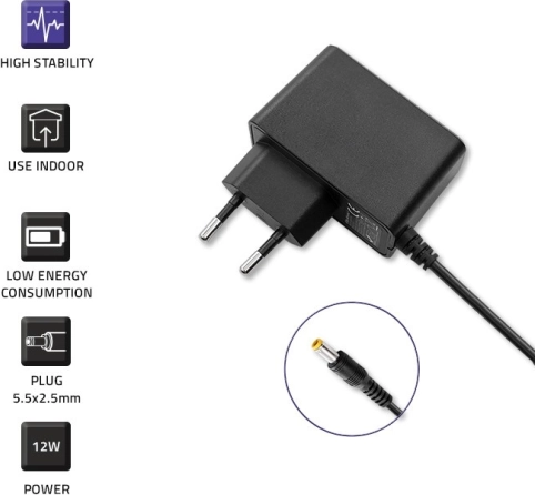 Deze adapter is ideaal waar geen hoogvermogenvoeding nodig is. Hij kenmerkt zich door compacte afmetingen en eenvoudige installatie direct in het stopcontact.