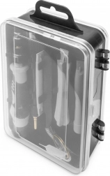 Stevig, transparant etui met zekere sluiting houdt alle onderdelen veilig op hun plaats en maakt het snel vinden van het juiste gereedschap mogelijk, thuis en onderweg.