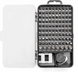 Met deze professionele set hebt u altijd het juiste gereedschap bij de hand. De uitgebreide selectie precieze bits van hoogwaardig S2- en Cr‑V-staal zorgt voor lange levensduur, nauwkeurigheid en betrouwbaarheid bij dagelijkse reparaties aan elektronica en fijne mechanica. Het compacte, dubbelzijdige etui houdt alles overzichtelijk geordend en gemakkelijk toegankelijk.