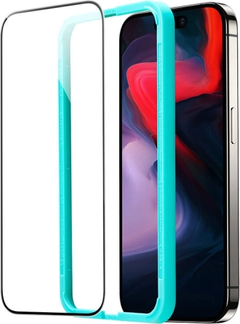 Bescherm je iPhone 15 Pro met hoogwaardig ESR-gehard glas met een hardheid van 9H en weerstand tot 15 kg druk. Biedt hoge transparantie voor perfecte weergave, volledige werking van Face ID en eenvoudige installatie dankzij een geleiderframe zonder luchtbellen. Inclusief luidsprekerbescherming tegen vuil, zonder invloed op de geluidskwaliteit.