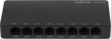 - 8× RJ‑45 10/100/1000 Mb/s (auto-negotiation, MDI/MDIX)