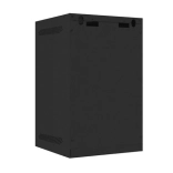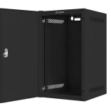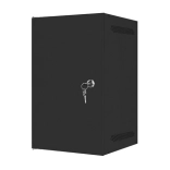 De kast wordt geleverd in een praktische flat-pack voor eenvoudig transport en snelle montage. De draaibare voordeur tot 180° met slot zorgt voor gemakkelijke toegang en veiligheid. Doorvoeren in het boven- en onderpaneel vereenvoudigen de kabelgeleiding en ondersteunen een nette installatie-indeling.