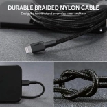 De nylon mantel en de stevige afwerking van de AUKEY‑connectoren minimaliseren slijtage en voorkomen in de knoop raken voor een lange levensduur bij dagelijks gebruik.