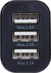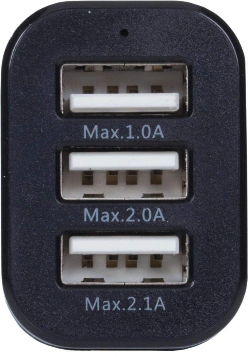 Praktische en universele autolader met drie USB-poorten die u voldoende energie onderweg biedt. Dankzij de 12–24 V ingang is hij geschikt voor personen- en vrachtwagens en kan hij comfortabel tot drie apparaten tegelijk van stroom voorzien. Het compacte ontwerp met zwarte behuizing en metalen accent past gemakkelijk in elk vakje.