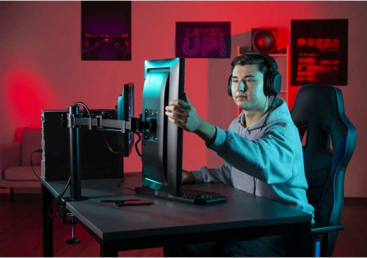 De houder maakt het afstellen van monitoren mogelijk voor de juiste ergonomie, zorgt voor betere lichaamshouding en minimaliseert nekpijn.