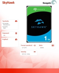 SkyHawk 1TB vaste schijf benut de uitgebreide ervaring van het merk Seagate in de productie van schijven voor bewakingssystemen. Met een capaciteit van 1 TB is het ideaal voor het opslaan van videobeelden.