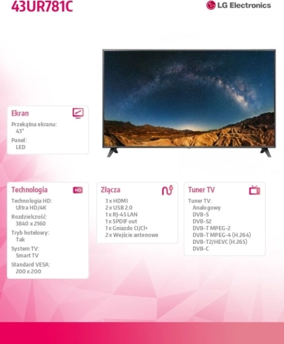De LG UR781 in 43" levert gedetailleerd 4K UHD-beeld en soepele werking van slimme apps. De dunne randen en de minimalistische standaard benadrukken de elegante look die past in zowel de woonkamer als de slaapkamer.