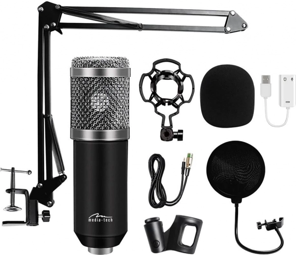 Dankzij de externe geluidskaart kan de microfoon op elke pc worden aangesloten, en de flexibele houder maakt vrije positionering mogelijk.