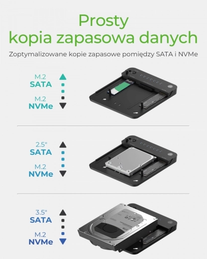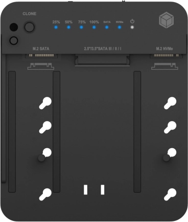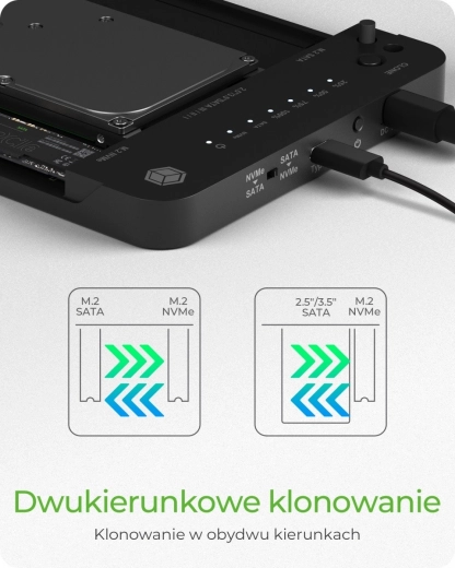 Tweerichtingsklonen: Met één druk op de knop kunt u klonen tussen 2,5"/3,5" SATA HDD/SSD en M.2 PCIe NVMe SSD, waarbij een exacte kopie van alle data en instellingen behouden blijft.