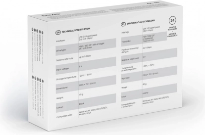 De behuizing is compatibel met besturingssystemen Windows XP, Vista, 7, 8, 10, 11, macOS en Linux, wat zorgt voor brede bruikbaarheid op diverse apparaten. Dankzij de compacte afmetingen van 120,5 × 75 × 13 mm en een gewicht van 45 g is hij gemakkelijk mee te nemen. Ontworpen voor gebruik bij temperaturen van -20 °C tot 50 °C, wat betrouwbaarheid in uiteenlopende omstandigheden garandeert.