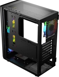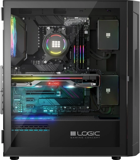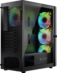 De LOGIC Aramis ARGB Midi is ontworpen voor gamers die op zoek zijn naar een modern en functioneel systeem. Uitstekende luchtstroom wordt geleverd door drie 120 mm ventilatoren aan de voorkant en één achteraan, die de componenten efficiënt koelen. De behuizing heeft een openslaande deur van gehard glas, wat onderhoud en reiniging vergemakkelijkt. Achter de zwarte esthetiek schuilt ruimte voor componenten met een grafische kaart tot 340 mm lengte en een CPU-koeler tot 155 mm hoogte.