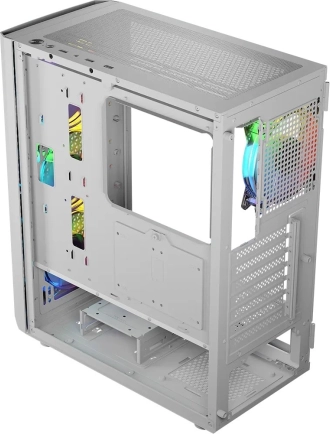 De Logic Aramis ARGB MIDI is een doordachte behuizing voor gamers die een combinatie willen van luchtstroom, ARGB-esthetiek en eenvoudig onderhoud. Het geperforeerde voor- en bovenpaneel zorgt voor een efficiënte luchttoevoer, terwijl vier 120 mm ARGB-ventilatoren uit de fabriek de componenten binnen een veilig temperatuurbereik houden. Het zijdeurtje van gehard glas is scharnierend voor snelle toegang zonder demontage.