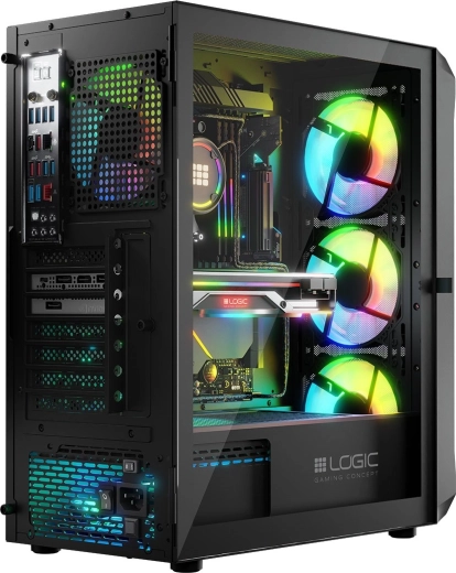 Bouw je een gaming-pc? Dan wil je natuurlijk dat je build een robuuste, doordachte, goed ontworpen en fraai uitziende behuizing heeft. Een behuizing met vier geïnstalleerde ARGB-ventilatoren, een luchtige voor- en bovenkant en stoffilters. En nog beter als het zijpaneel is uitgevoerd als een deur van gehard glas. Precies hier komt de Logic Concept Portos MIDI-behuizing om de hoek kijken. Een serieuze concurrent voor gaming-taken, die zorgt voor goede luchtstroom, nette componentafwerking, componentveiligheid en lage temperaturen van de geïnstalleerde onderdelen.