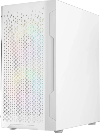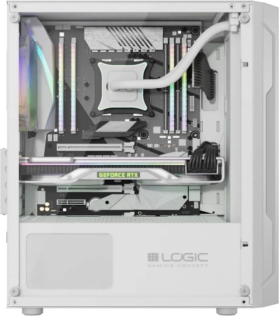 LOGIC Aramis ARGB Mini in elegant wit combineert een modern uiterlijk met doordachte airflow. Het frontpaneel met fijn mesh laat voldoende lucht binnen, terwijl twee voorgeïnstalleerde 120mm ARGB ventilatoren de componenten koel houden en je build stijl geven. Het zijpaneel van gehard glas laat je grafische kaart en verlichte elementen schitteren, terwijl je de verlichting eenvoudig schakelt met de RESET-knop op het bovenpaneel.