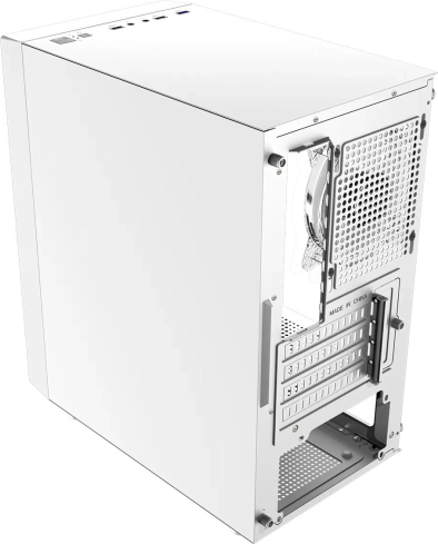 De behuizing is geschikt voor Micro‑ATX en Mini‑ITX moederborden, biedt 4 PCIe-sloten, ruimte voor GPU tot 290 mm en een CPU-koeler tot 160 mm. Opslag wordt verzorgd door een cage voor 2× 3,5"/2,5" schijven en een extra 1× 2,5" positie op de tray (voor montage van het moederbord). De voeding is verborgen in een shroud met onderste luchtinlaat en stoffiltering voor een schoner interieur. Het bovenste I/O‑paneel biedt USB 3.0, 2× USB 2.0 en HD-audio voor snelle aansluiting van randapparatuur.