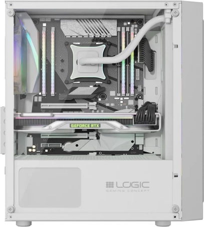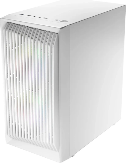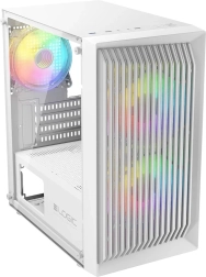 LOGIC Atos ARGB mini is een elegante witte behuizing, ontworpen voor moderne gaming‑pc’s. Het ademende front met mesh‑rooster en twee voorgeïnstalleerde 120mm ARGB ventilatoren zorgen voor uitstekende airflow, lagere temperaturen en stille werking. Zo presteren je componenten efficiënter en gaan ze langer mee.