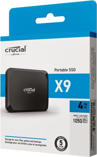 De compacte externe SSD Crucial X9 biedt snelheden tot 1050 MB/s, een royale capaciteit van 4 TB en eenvoudig plug‑and‑play gebruik. Hij is tot 7,5× sneller dan gangbare externe HDD’s, overleeft vallen vanaf hoogtes tot 2 m en is breed compatibel met pc, Mac, Android, tablets en spelconsoles.