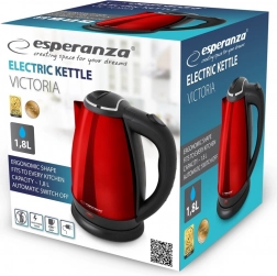 De elektrische waterkoker Victoria biedt een combinatie van stijl en praktisch gebruik. Ontworpen voor comfortabel gebruik met een ingebouwd verwarmingselement en eenvoudig te plaatsen op de basis. Voor maximaal comfort heeft het een handgreep die niet verwarmt.