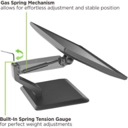 Het hoogwaardige gasveermechanisme balanceert het gewicht van de monitor en maakt moeiteloze, veilige hoogteverstelling mogelijk.