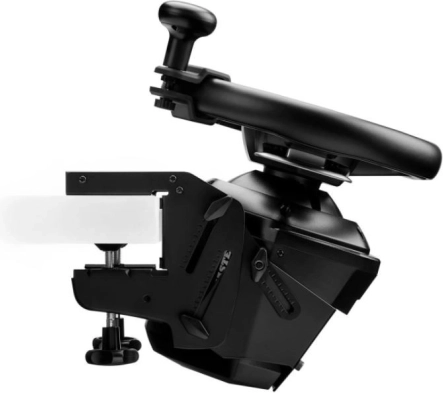 Een sterke metalen klem met verstelbare schroeven zet de houder stevig vast aan de tafelrand, elimineert trillingen en houdt het stuur exact op zijn plek, zelfs bij krachtige manoeuvres.