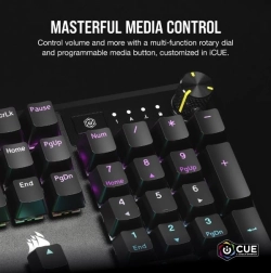 Het CORSAIR K70 CORE gamingtoetsenbord laat je op je best spelen en dankzij de eenvoudige mediabediening en de CORSAIR MLX Red lineaire schakelaars is gamen en typen een genot.