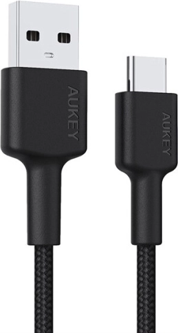 AUKEY USB-C naar USB-A kabel 0,9 m, 60 W PD, nylon gevlochten, zwart