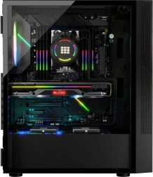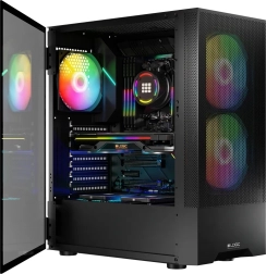 Maximale koeling en stilte — De voor- en bovenpanelen zorgen voor een effectieve luchtstroom. ARGB-ventilatoren werken stil en de behuizing ondersteunt de installatie van waterkoeling voor optimale werking van componenten.