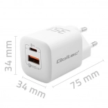 Ondersteunt USB‑C Power Delivery en een USB‑A‑poort met Qualcomm Quick Charge 3.0, zodat u tot circa 60% in 30 minuten kunt opladen (afhankelijk van het apparaat). Dankzij het gewicht van slechts 53 g en het compacte ontwerp is hij ideaal voor thuis, op kantoor en onderweg – voor smartphone, tablet, koptelefoon, smartwatch of een compatibele laptop.
