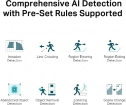 Belangrijke AI-functies: Geavanceerde algoritmen maken herkenning van personen en voertuigen mogelijk, voor nauwkeurigere gebeurtenissen en flexibel instelbare alarmregels.