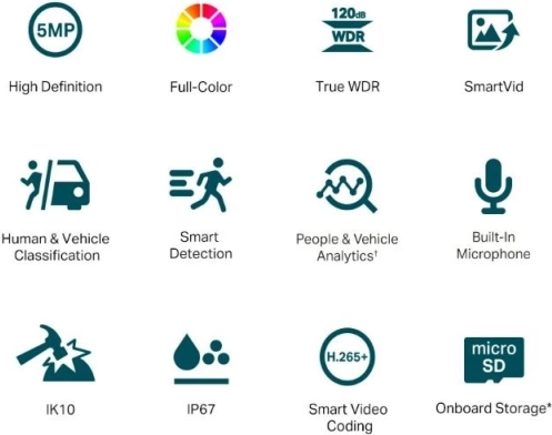 Hoge 5MP-kwaliteit: De camera levert haarscherpe details met hoge resolutie en legt elk moment in volle kleur vast, zelfs in het donker.