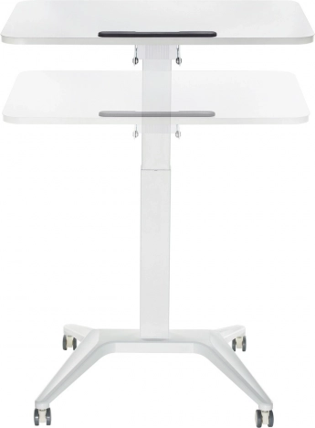 Wissel gedurende de dag af tussen zitten en staan voor gezondere werkgewoonten. Dankzij de soepele pneumatische hoogteverstelling pas je de mobiele laptopt tafel van Maclean snel aan jouw postuur en activiteit aan. Het kantelbare blad verbetert de ergonomie bij schrijven, lezen en werken op de laptop, terwijl de metalen constructie stabiliteit garandeert bij elk gebruik.