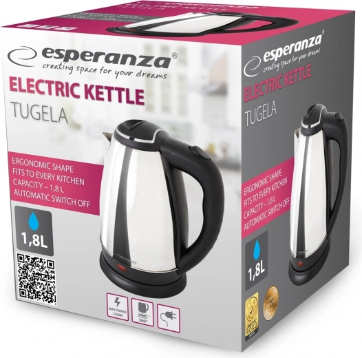 De stijlvolle Tugela-ketel combineert een minimalistisch design met praktisch gemak voor dagelijks gebruik. Het roestvrijstalen oppervlak, zowel geborsteld als gepolijst, past in elke keuken en is eenvoudig te onderhouden. Het draadloze ontwerp maakt vrije plaatsing en eenvoudige handling mogelijk.