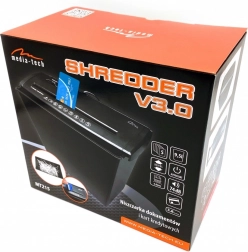 De SHREDDER V3.0 is een praktische oplossing voor de veilige vernietiging van persoonlijke en zakelijke documenten. Hij verwerkt papier, kunststof folies en betaalkaarten en verandert ze in smalle stroken van 6,8 mm, wat het reconstrueren van data sterk bemoeilijkt. Dankzij de compacte afmetingen past hij op elk bureau en is hij gemakkelijk te bedienen.