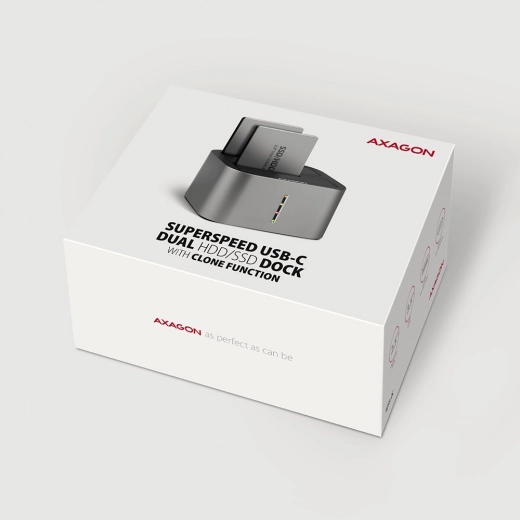Universele AXAGON‑dockingstation voor twee 2.5"/3.5" schijven met snelle aansluiting via USB‑C 5 Gb/s, ondersteuning voor SATA 6 Gb/s met UASP en handig offline klonen zonder computer. Benut de volledige prestaties van SSD, inclusief TRIM, uitlezen van S.M.A.R.T. en automatische slaapstand. Een stabiele behuizing van aluminium, LED‑indicatie en een meegeleverde USB‑C‑naar‑USB‑A‑kabel zorgen voor eenvoudig en betrouwbaar gebruik.