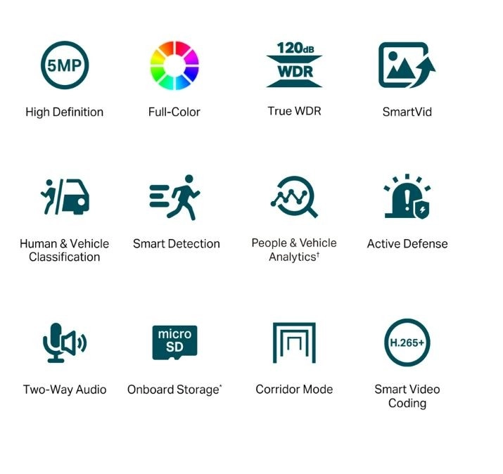 De TP-Link VIGI C450 camera levert een zeer hoge 5MP-resolutie en full-color nachtzicht dankzij de gevoelige sensor en geïntegreerde spot-LED’s. Geavanceerde SmartVid-technologieën zoals True WDR, Smart IR en 3D DNR verbeteren het beeld duidelijk in veeleisende scènes en zorgen voor leesbare details voor professioneel toezicht.
