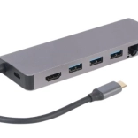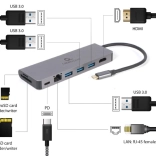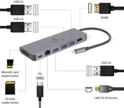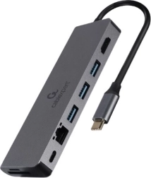 Compacte hub voor laptops en tablets met usb‑c voegt alles toe wat je nodig hebt: hdmi met uhd 4k, gigabit‑ethernet, 2× usb‑a (usb 3.1 5 Gb/s), sd/microsd‑kaartlezer en usb‑c power delivery 100 W in een robuuste metalen behuizing.