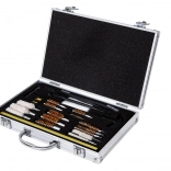 Complete wapenreinigingsset in een elegante koffer met 24 onderdelen voor het onderhoud van korte en lange vuurwapens. Bevat messing- en katoenen borstels, verlengstangen, adapters en reinigingstampons voor precieze verzorging. Regelmatig onderhoud verhoogt de betrouwbaarheid, nauwkeurigheid en veiligheid tijdens het schieten. Alles is overzichtelijk opgeborgen in een stevige koffer voor eenvoudig transport en opslag.